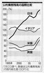 国債残高は、高水準のイタリアを抜く見通し。(朝日新聞の内容)